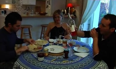 Nasty Stepmother jerks off her Husband's jizz-shotgun while her Stepson fucks her in the ass with his big dick!
