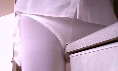Step sister pulled down her pantyhose to cum in her panties