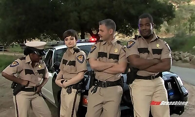Pretty police woman attracted to a black male partner getting cozy at the station