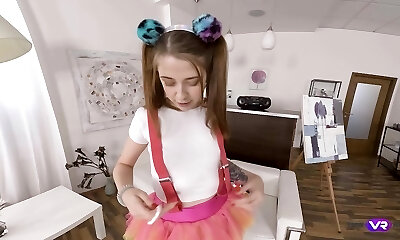 Ardent pigtailed female Alita Angel loves petting her wet pussy