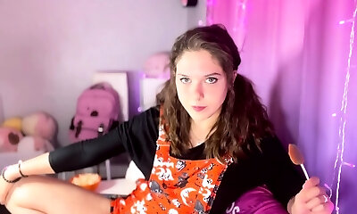 CLOSE-UP Of A Young Student Without Underpants Cumming On Camera