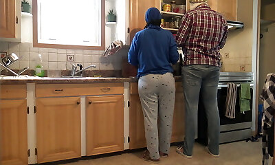 VIRAL Amateur Arab Cougar runs in rivulets all over kitchen counter while fucked with di