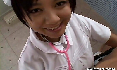 Chubby Japanese nurse moans in agony as the dude nails her beaver