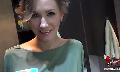 Uber-cute brunette babe gets her sexy body massaged by a ultra-kinky guy