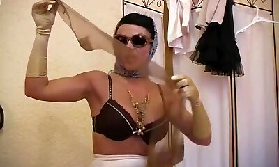 Sexy Milf wanks in vintage lingerie nylons leather high-heeled slippers