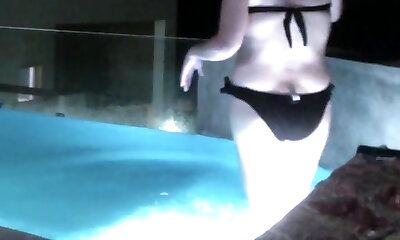 Massive Naughty Girl Wants To Have Some Joy At Night In A Public Pool