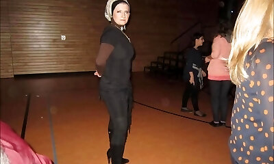 Zesty biz woman flashes her thick hips in public