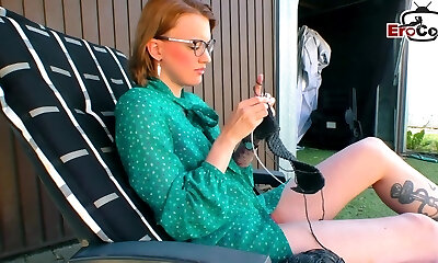 Sandy the sexy Greek nymph fucktoys herself with a banana